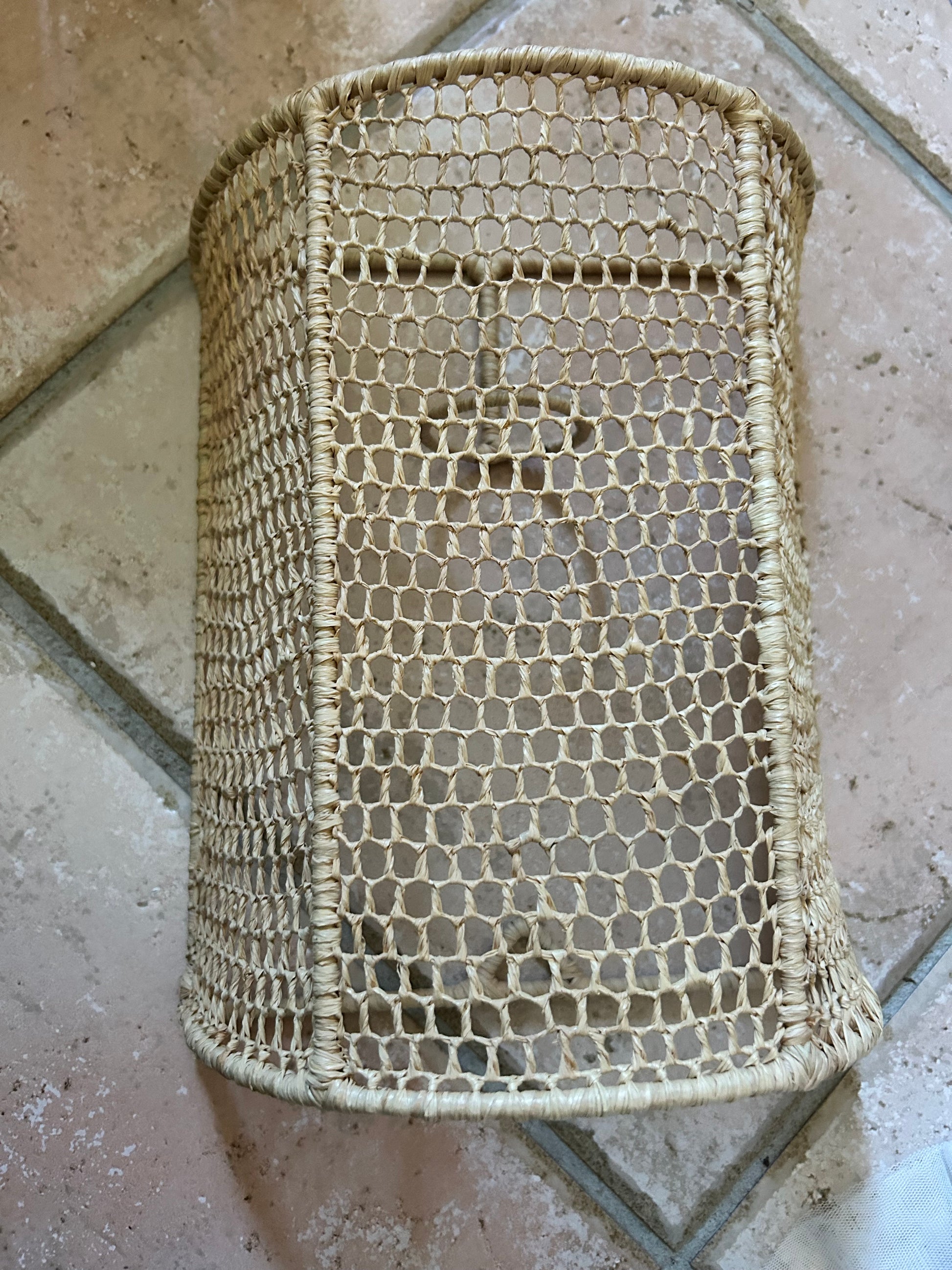 Le raphia offre une texture unique et demande une attention soignée afin de ne pas abîmer la fibre, mais grâce à son tressage serré résiste à l’usage quotidien. Ne dois pas être posé dans un endroit humide (salle de bain).