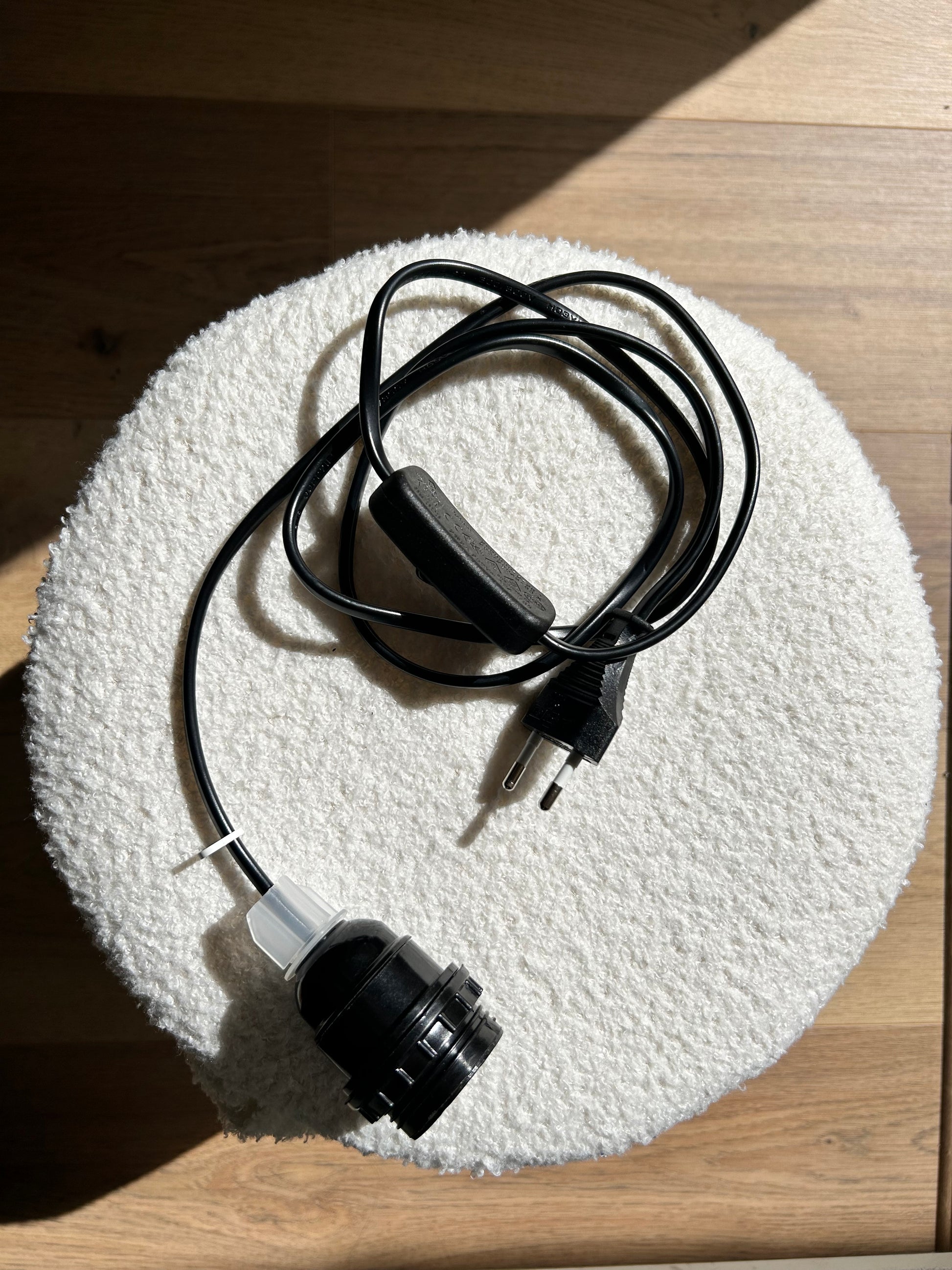 Kit cordon pré-équipé avec douille E27, en tissu noir pour lampe à poser.