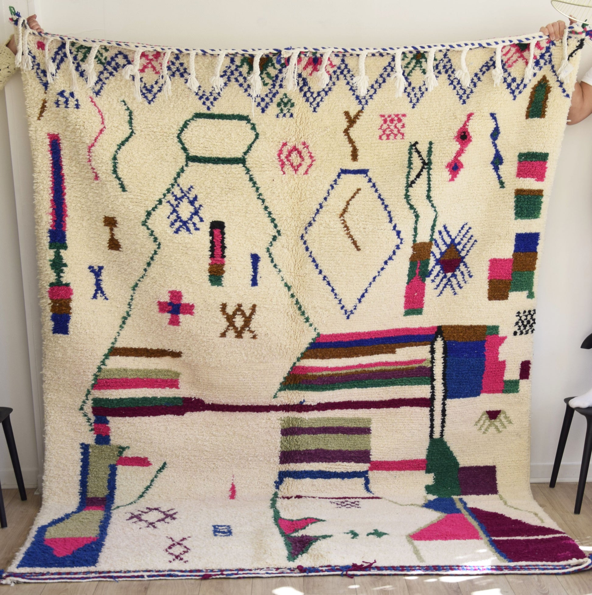 Fabriquée à la main dans les provinces de Marrakech, pure laine de mouton, la particularité de ces tapis et le savoir-faire : un tissage très serré pour un rendu dense et de haute qualité. Tapis issu d’un savoir-faire ancestral de nos artisans et de leurs traditions.