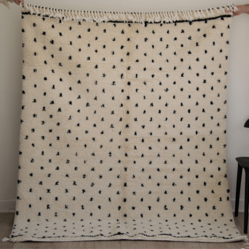 Fabriquée à la main dans les provinces de Marrakech, pure laine de mouton, la particularité de ces tapis et le savoir-faire : un tissage très serré pour un rendu dense et de haute qualité. Tapis issu d’un savoir-faire ancestral de nos artisans et de leurs traditions.