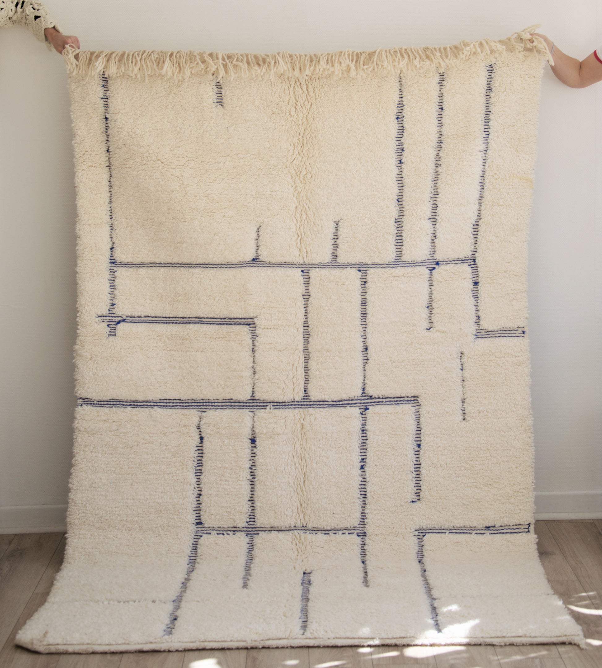 Fabriquée à la main dans les provinces de Marrakech, pure laine de mouton, la particularité de ces tapis et le savoir-faire : un tissage très serré pour un rendu dense et de haute qualité. Tapis issu d’un savoir-faire ancestral de nos artisans et de leurs traditions.